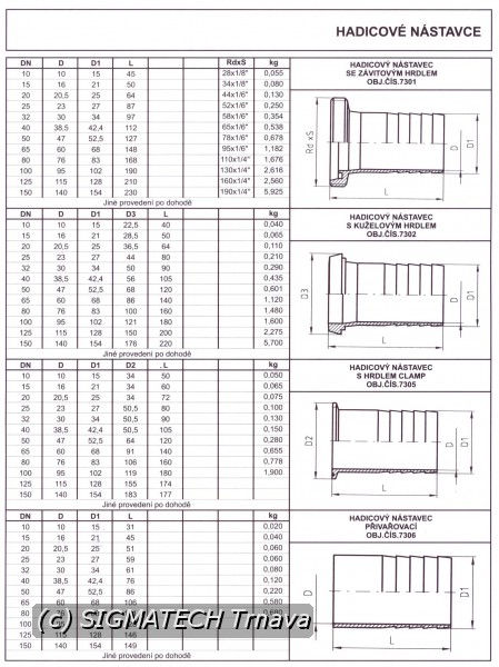 Šrobenia potravinárske DIN, SMS, ČSN, ISO