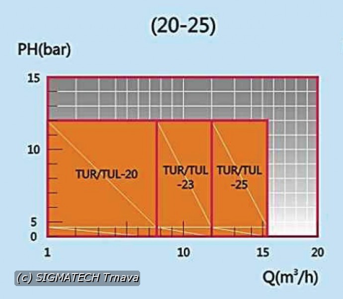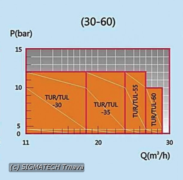 Výkonová charakteristika čerpadiel v prílohe