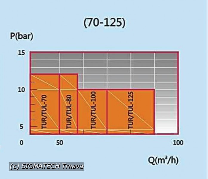 - Prietok, minimálny, bežný a maximálny ( 1 m3/h až 62 m3/h )